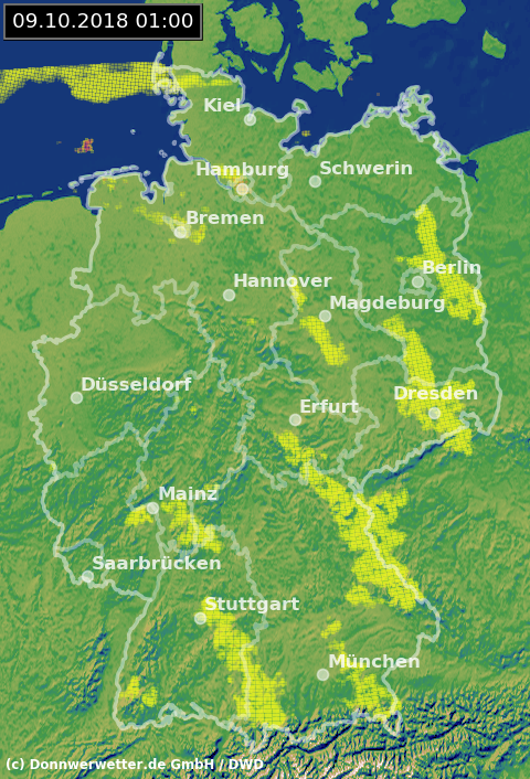 Radarbild von Dienstag, 09.10.2018 um 01.00 Uhr
