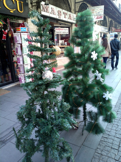 Der Weihnachtsmann kann die Geschenke heute Abend bei milden Temperaturen ausliefern. Allerdings muss er gegen den starken Westwind ankämpfen, wie im Kinderbild unten. Glätteprobleme gibt es in ganz Deutschland nicht. Allerdings zieht ein Regengebiet durch Deutschland. Auch morgen regnet es lange. Ungefähr 2 Mio. Deutsche verbingen die Weihnachten im Ausland, die meisten in milden Gefilden, um dem Winter zu entfliehen. Die Temperaturen sind in diesem Jahr im Mittelmeerraum nur wenig wärmer als zu Hause. Die Bilder zeigen Weihnachtsschmuck in einem Hotel in Istanbul und Tannenbäume zum Kauf auf den Straßen im Süden der Türkei.