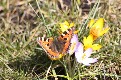 Bei diesem Frühlingswetter lassen sich die ersten Falter draußen sehen. Der kleine Fuchs-Schmetterling setzt sich gerne auf die Blüten im Klimagarten im Donnerwetter.de Wetterpark in der Eifel. Krokusse und Winterlinge sind jetzt in voller Pracht zu sehen. Auch das Schneeglöckchen zeigt sich nun fast überall auf den Wiesen.