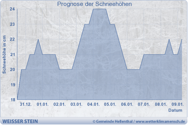 Die aktuelle Schneehöhe beträgt am heutigen Mittwochmorgen 19 cm an der Messstation Weißer Stein.