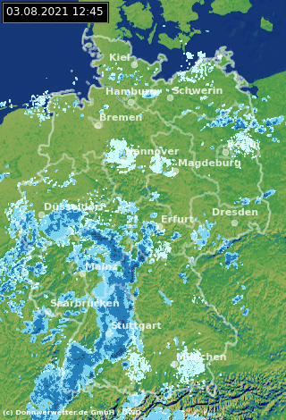 Regenradar 03.08.2021 (Stand 13:00 Uhr)