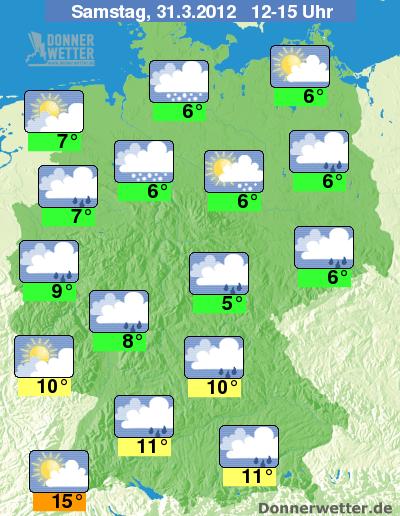 Hoch 'Harry' hat sich auch den nördlichen Atlantik zurück gezogen, zwischen dem Hoch und dem Tief Ellen über Polen wird von Norden kalte Polarluft nach Deutschland gelenkt. Die Temperaturen sinken deshalb am Wochenende ordentlich ab, am Samstag werden im Norden meist nur noch um 6 Grad erreicht. Teilweise geht der Regen in Graubel und Schneeregen über.