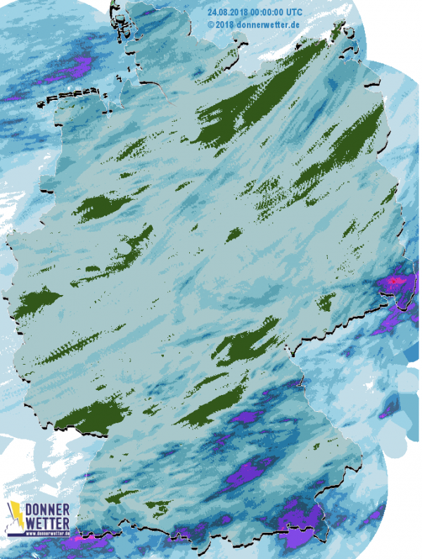 Gestern gab es, wie das  24-Stunden.Radar-Bild zeigt, schon verbreitet leichte Schauer. Die Regenmengen blieben aber eher gering. Heute folgen nochmals Schauer in kalter Luft.