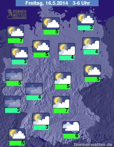 Auch in der zweiten Nachthälfte gibt es kaum Veränderung. Die Tiefstwerte in der Nacht zum Freitag erreichen dann bei lockerer oder aufgelockerter Bewölkung, im Westen teils klarem Himmel mit örtlicher Nebelbildung, um 7 bis 3 Grad.
