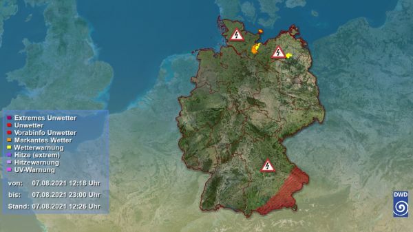 Unwettervorabwarnung für den Süden und Südosten Bayerns.