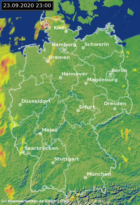 Radarbild von Mittwoch, 23.09.2020 um 23.00 Uhr