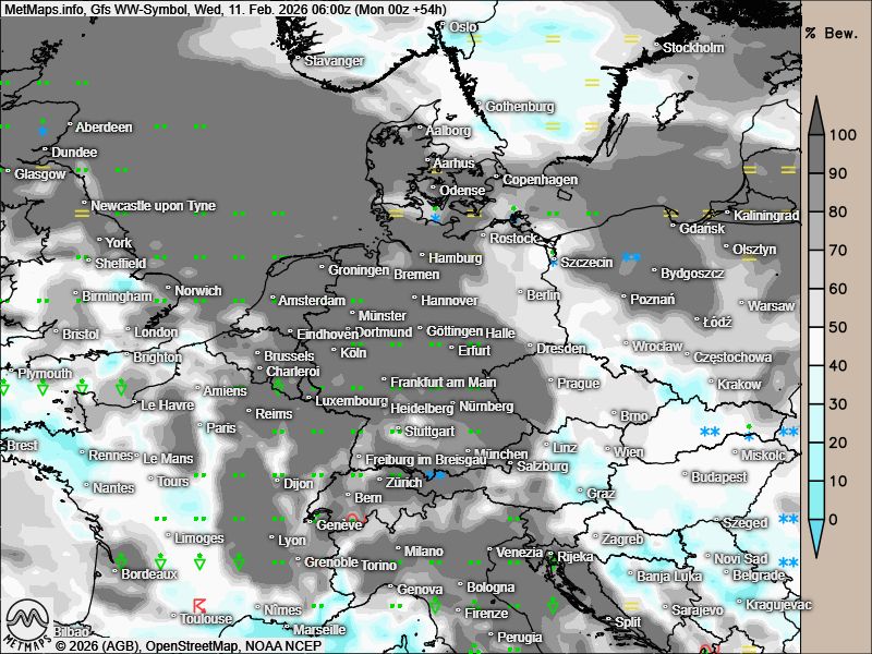 Mit der Westwetterlage gehen auch Niederschläge einher: Bis etwa zum 20. Februar werden verbreitet höhere Regenmengen erwartet.