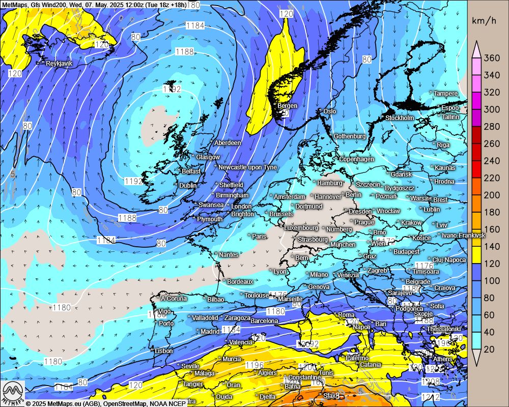 Jetstream und Höhenfeuchte sind zur Zeit südlich der Alpen über dem Mittelmeerraum zu finden.