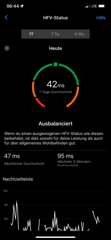 So auch in unserem persönlichen Beispiel, aufgezeichnet mit einer HRV-fähigen Smartwatch.