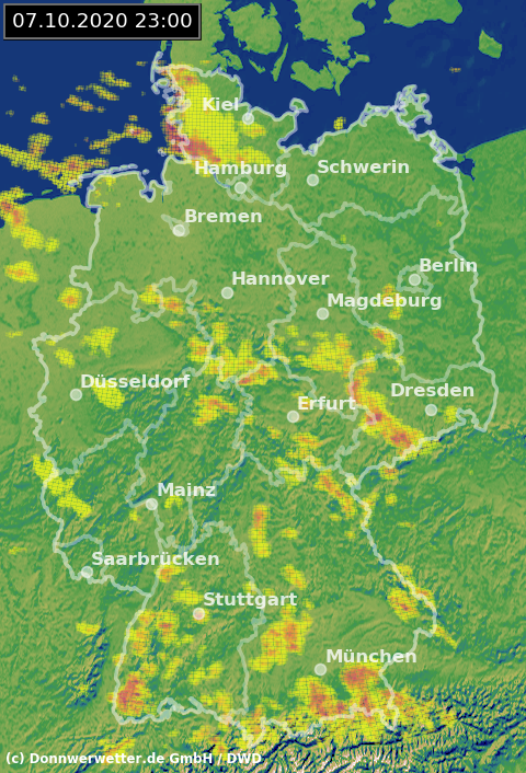 Radarbild von Mittwoch, 07.10.2020 um 23.00 Uhr