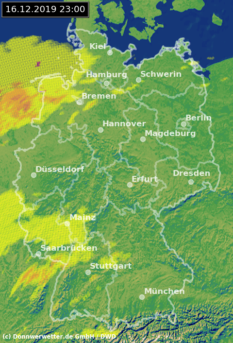 Radarbild von Montag, 16.12.2019 um 23.00 Uhr