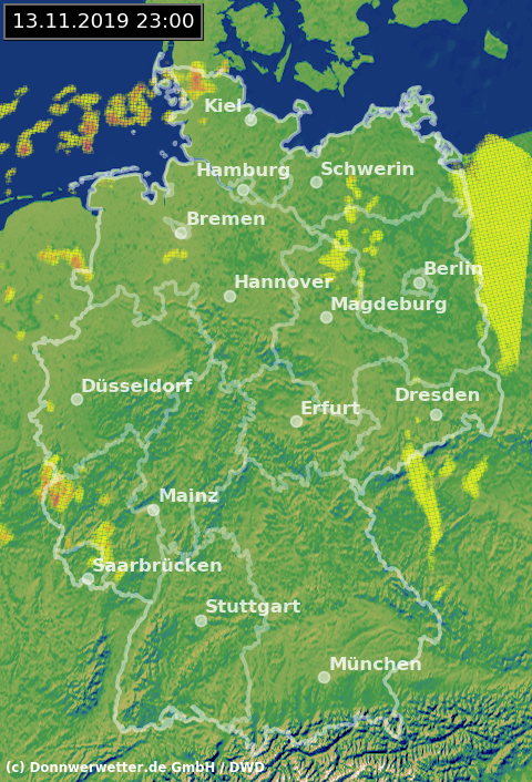 Radarbild von Mittwoch, 13.11.2019 um 23.00 Uhr