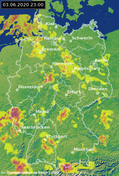Radarbild von Mittwoch, 03.06.2020 um 23.00 Uhr