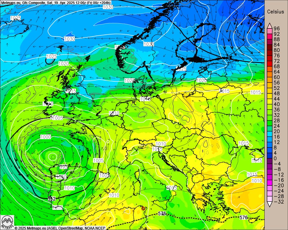 Nachfolgend die Wetter- und Vorhersagekarte mit Temperaturen für den Karsamstag (19.04.2025).