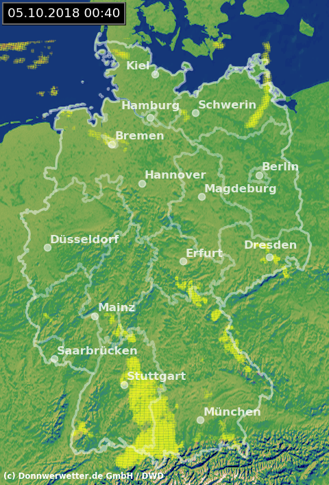 Das Radarbild zeigt aktuell einige leichte Signale, aber du nur aus denen ganz im Norden fällt noch ein wenig Regen oder Sprühregen. Sonst präsentiert sich der Himmel über dem Nordosten Deutschlands meistens wolkenverhangen sonst sternenklar. Über der Mitte und im Süden haben sich einzelne Nebelfelder gebildet.