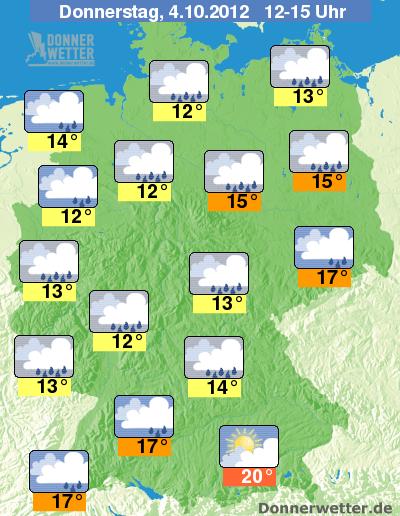 Am Donnerstag regnet es bei meist dichter Bewölkung in vielen Teilen Deutschlands