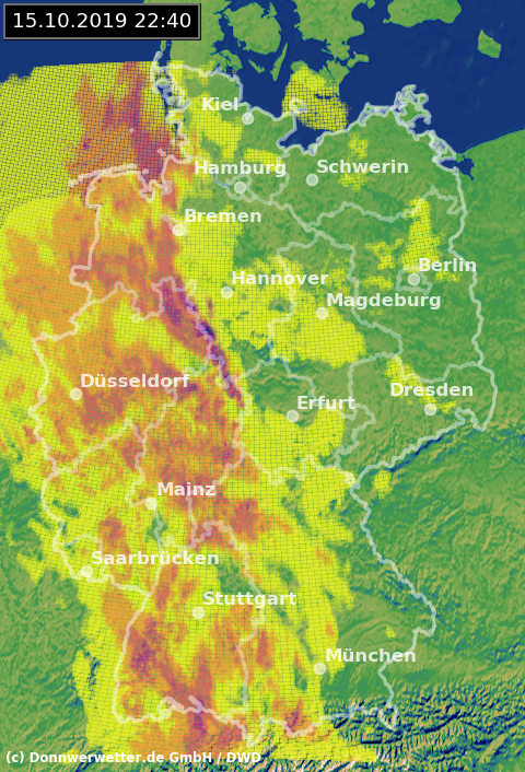 Radarbild von Dienstag, 15.10.2019 um 22.40 Uhr
