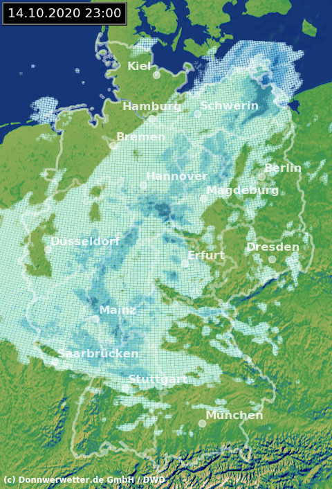 Radarbild von Mittwoch, 14.10.2020 um 23.00 Uhr