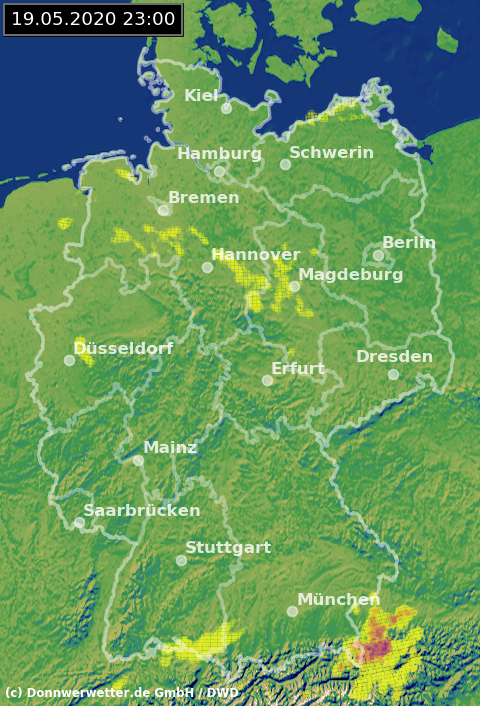 Radarbild von Dienstag, 19.05.2020 um 23.00 Uhr