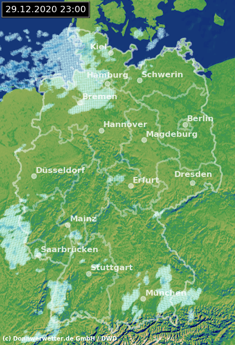 Radarbild von Dienstag, 29.12.2020 um 23.00 Uhr
