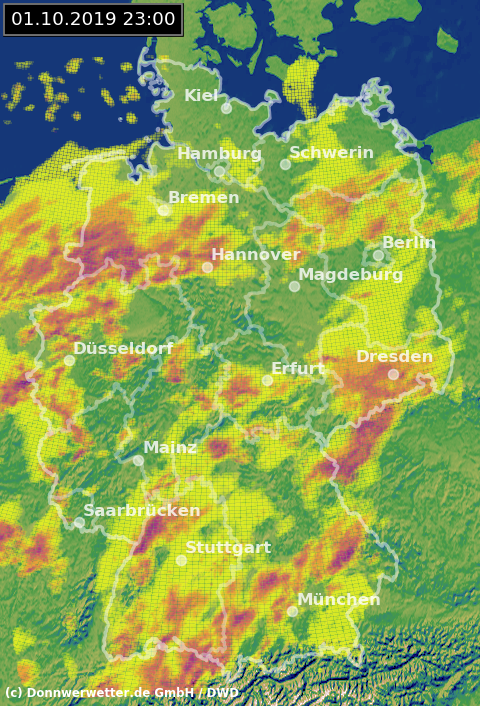 Radarbild von Dienstag, 02.10.2019 um 23.00 Uhr