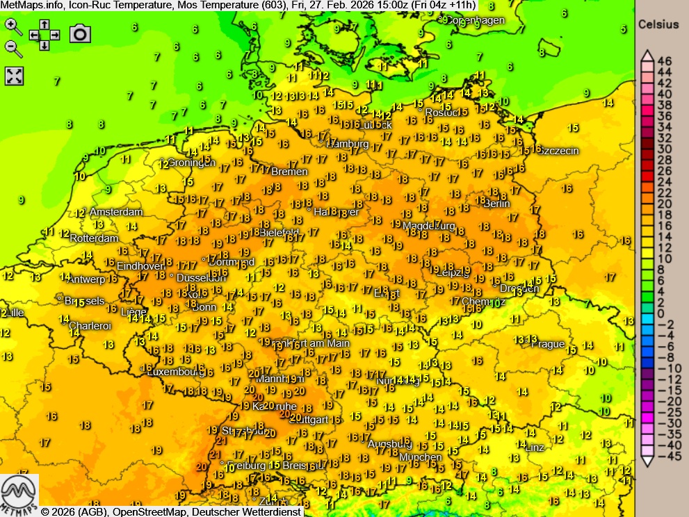 Mehr als ein Jahrhundert später richtet sich der Blick erneut auf die Thermometer. Für den heutigen Freitag deuten die Prognosen darauf hin, dass im Südwesten Spitzenwerte von 22 bis 23 Grad Celsius möglich sind – insbesondere im Breisgau sowie im Raum Karlsruhe. Damit könnte der alte Februarrekord zumindest erreicht, wenn auch voraussichtlich nicht übertroffen werden.