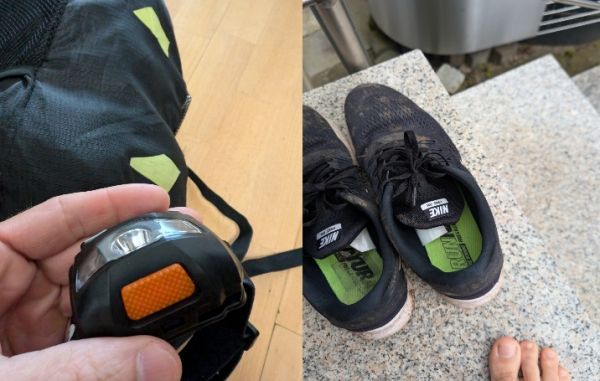 Dementsprechend gilt es, mich in Gepäckfragen auf alle Wettereventualitäten einzustellen und gleichzeitig mit möglichst wenigen Kilos den Marsch anzutreten. Vorbereitung ist bei einem 24-Stunden Marsch alles. Mit auf die Reise kommen in jedem Fall die ausgelatschtesten Schuhe, die der Schuhschrank ausspuckt. Ein bequemer  Gang, zumindest über die ersten 50 Kilometer, sollten so schon mal kein Problem darstellen; danach muss die "Bereifung" wohl gewechselt werden. Und ebenso wichtig: Die Stirnlampe mit Rotlicht, um das Wild in der Nacht nicht zu verschrecken.