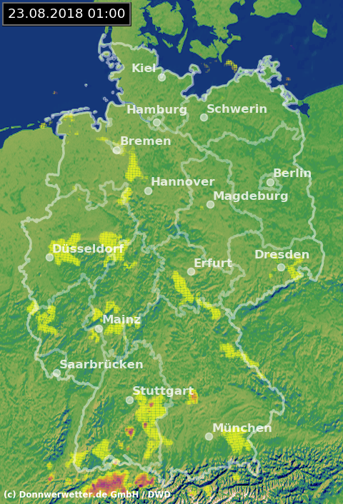 Radarbild von Donnerstag, 23.08.2018 um 01.00 Uhr