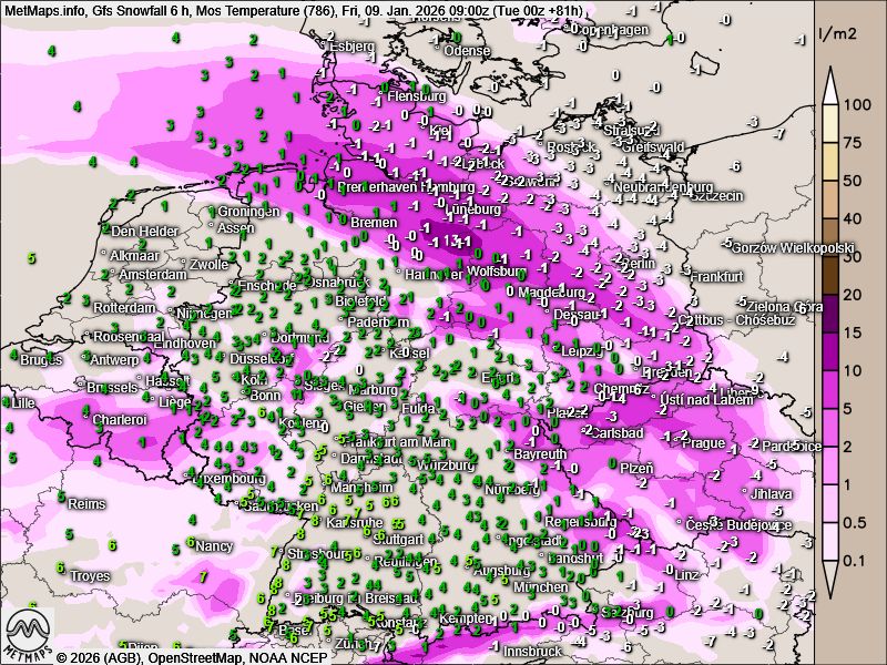 Am Freitag zieht bei starkem bis stürmischem Wind ein ausgeprägtes Schneefallband über das Land. Vor allem in Ost- und Norddeutschland ist mit erheblichen Verkehrsbehinderungen bis hin zu einem weitgehenden Stillstand zu rechnen. Durch Schneeverwehungen können lokal 10 bis 20 Zentimeter Neuschnee zusammenkommen.