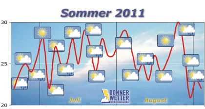 Nach einem Rekordsommer oder wochenlangem ungetrübtem Sonnenschein sieht es für uns nicht aus. Aber da sich die kurzen Schauer- und Gewitter-Phasen immer wieder mit warmem Sonnenwetter abwechseln, dürfte die Grill- und Bade-Bilanz im Sommer 2011 positiv ausfallen!