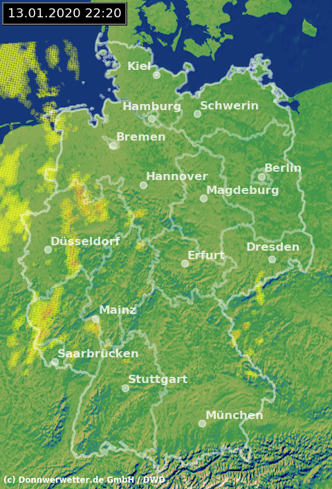 Radarbild von Montag, 13.01.2020 um 22.20 Uhr