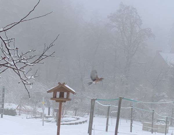 Eichelhäher zu Besuch im donnerwetter.de-Wetterpark.