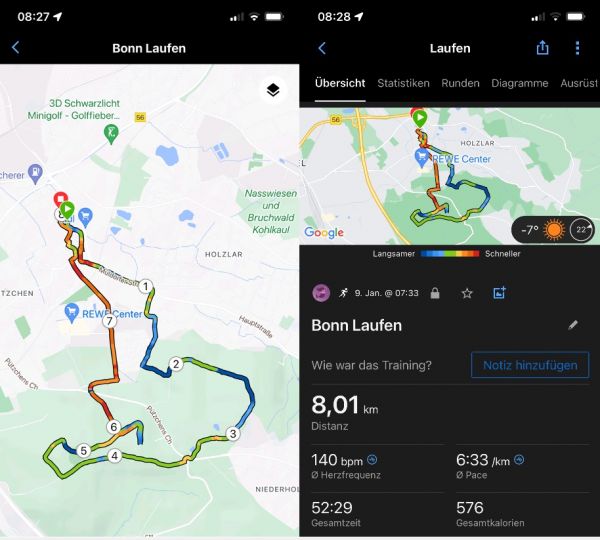Nun gut, mit knietiefem Schnee und Hochgebirgsanstiegen kann man mir hier zwar nicht dienen, dafür kommen zumindest die aktuellen Frühtemperaturen denen schon sehr nahe, die mich am 20. Januar beim swiss snow walk & run in Arosa erwarten.
