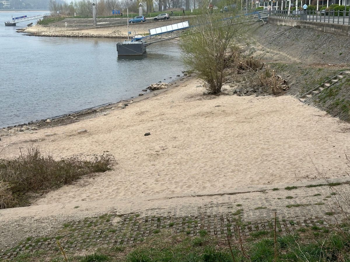 Auf den Fotos sind die Sand- und Kiesbänke des Rheins, aufgenommen am Mittwoch, abgebildet - erste Hinweise auf die kommende ungewöhnliche Situation: Die Pegelstände am Rhein könnten bei anhaltender Trockenheit bis zum 08.04.2025 auf die Herbstminima fallen.