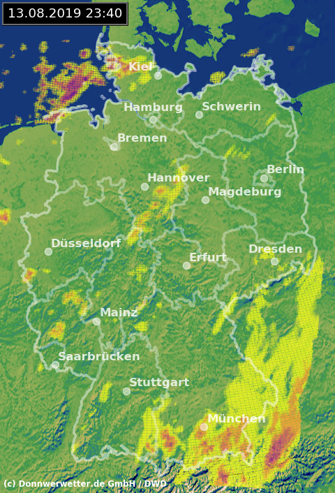 Radarbild von Dienstag, 13.08.2019 um 23.40 Uhr
