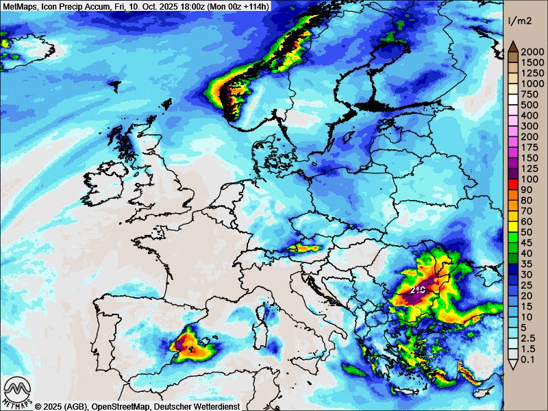 Nachfolgend die Regensummen bis Freitag in Europa. Gut zu erkennen ist das Hoch "Tina", welches nun mehr und mehr unser Wetter bestimmt.
