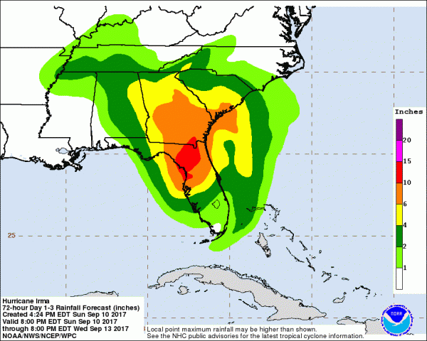 Noch 24 Stunden muss Florida bangen, dann wird sich die Situation deutlich entspannen. Am Dienstag zieht der Sturm nach Geogia und am Mittwoch wird es sich im mittleren Westen zögern auflösen. Hier die Windprognose für die USA: