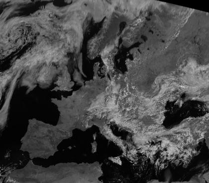 Hoch 'Siegbert' sorgt in West- und Mitteleuropa verbreitet für sonniges Wetter. Auch über Nordosteuropa ist es unter Hochdruckeinfluss nur locker bewölkt. Die großen Seen sind sichtbar.
