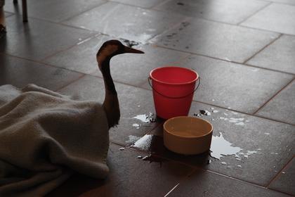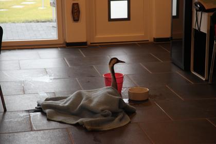 Nach einer Stunde holte der Schleidener Tierarzt Dr. Böttcher unseren Gast aus der Halle ab. Er wird ihn nun versorgen und röntgen und mit ein bisschen Glück überlebt er. Am Mittwoch wird sich heraus stellen, ob er eine Chance hat. Dieses Jahr wird er aber nicht mit seinen Freunden in den Süden fliegen können.