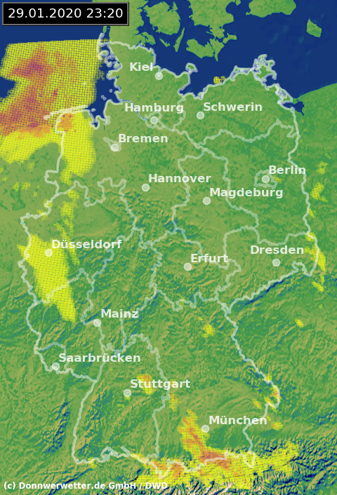 Radarbild von Mittwoch, 29.01.2020 um 23.20 Uhr