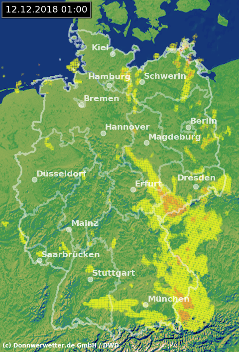 Radarbild von Mittwoch, 12.12.2018 um 01.00 Uhr