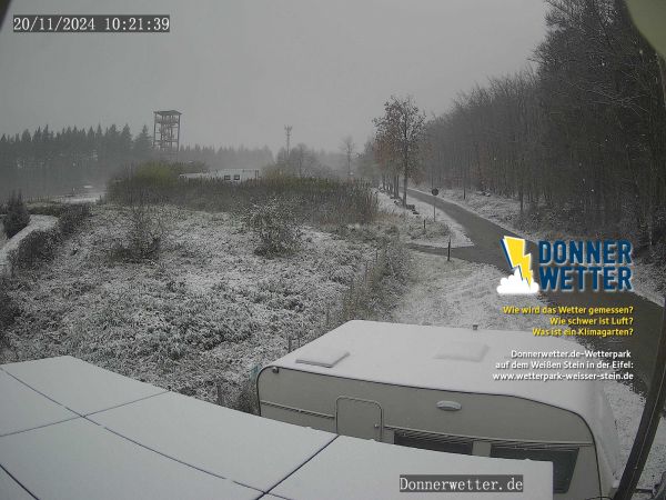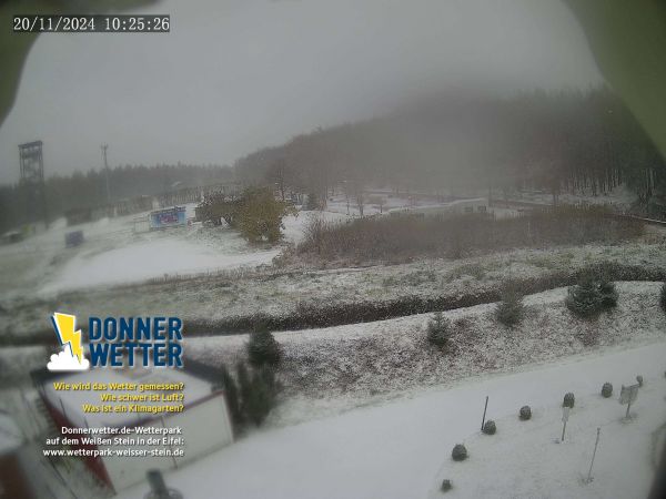 Auf 700 m Höhe hat der Novemberwinter hier mit seiner Stippvisite begonnen, bis Freitag/Samstag fomieren sich die nasen Flocken rund um den Wetterpark immerhin zu einer 10 cm starken Schneedecke.