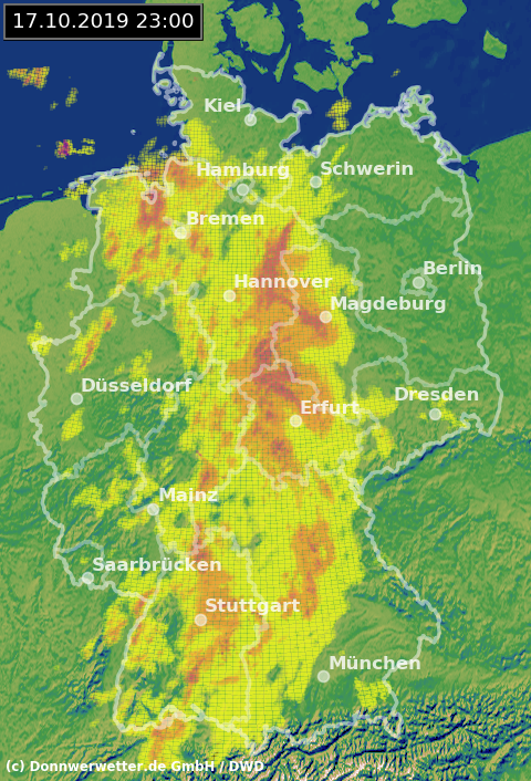 Radarbild von Donnerstag, 17.10.2019 um 23.00 Uhr