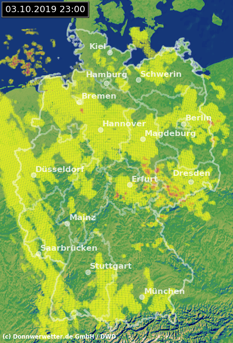 Radarbild von Donnerstag, 03.10.2019 um 23.00 Uhr