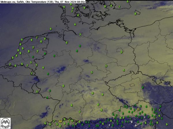 Das Satellitenbild von heute früh - eine dichte Hochnebeldecke liegt nahezu über dem gesamten Bundesgebiet.