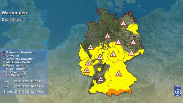 Aktuelle Unwetterwarnlage (20.01.2023, Stand 12:17 Uhr)