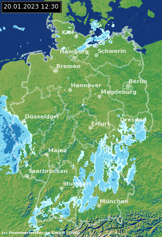 Niederschlagsradar 20.01.2023 (Stand 12:42 Uhr)