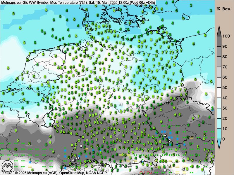 Wetterkarte GFS Samstag, 15.03.2025, 12:00 Uhr