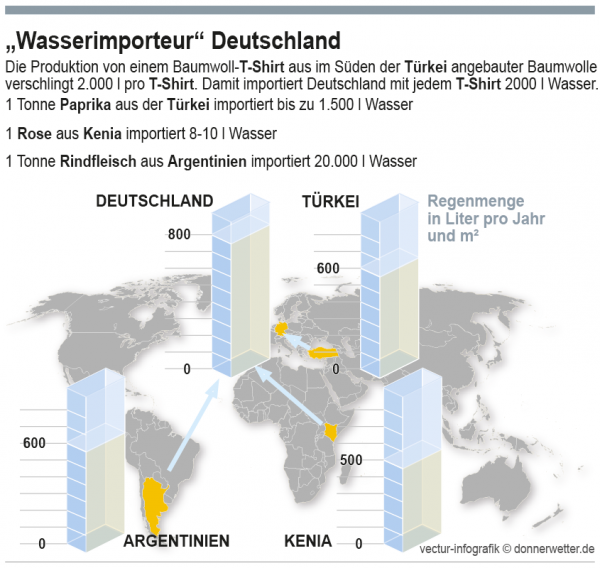 So viel Wasser importieren wir mit im Ausland hergestellten Produkten nach Deutschland.