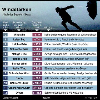 In der Beaufort-Skala werden Winde nach Ihren Geschwindigkeiten klassifiziert.